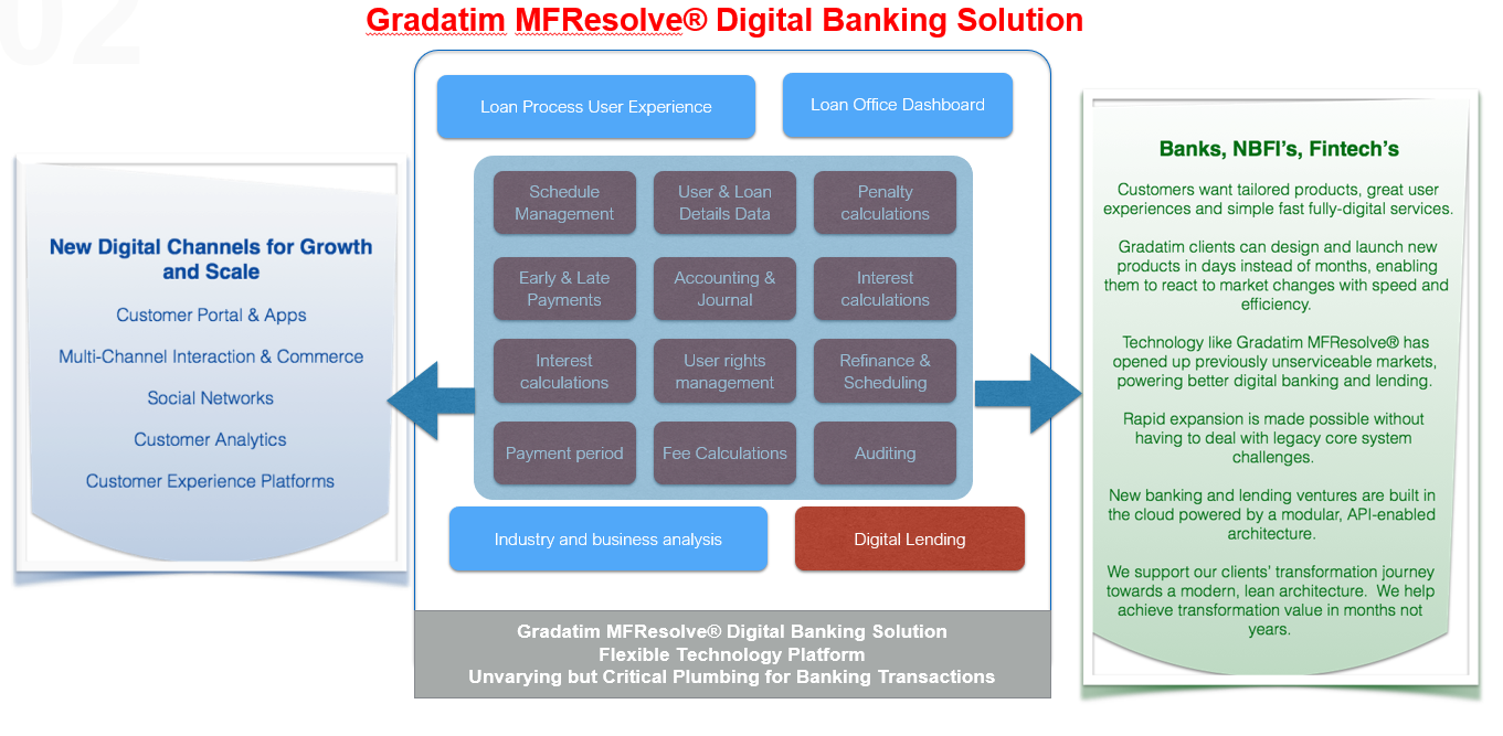 Helping financial institutions to rapidly deliver business value. Gradatim MFResolve® Digital Banking Solution is a cloud native solution is helping our clients as they grow, scale and transform to meet evolving digital demands.